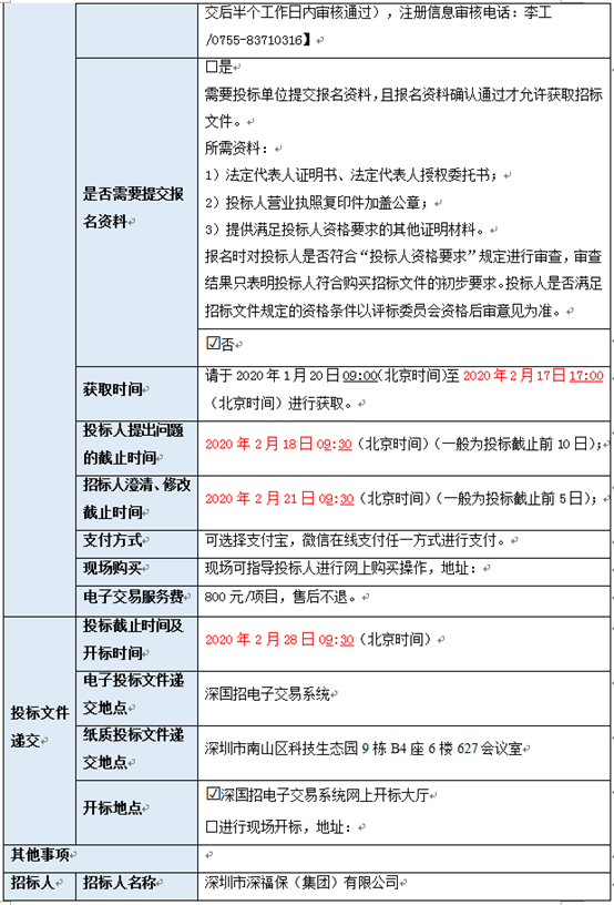 4.投标截止时间及开标时间变更为:2020年2月28日09:30(北京时间)。
