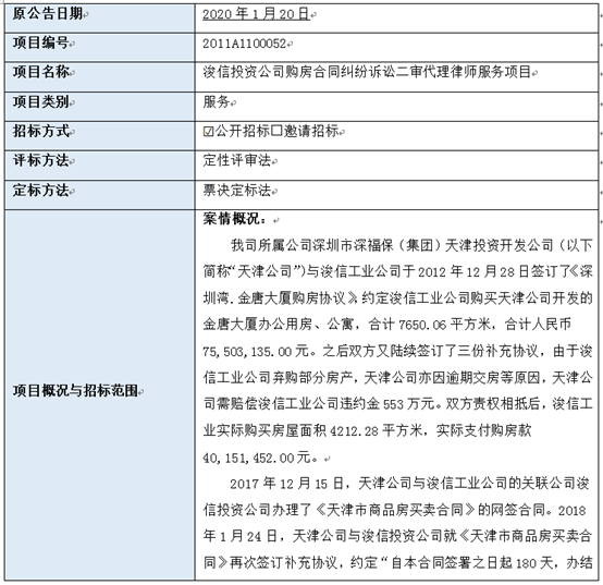 延期原因:为全力做好新型冠状病毒肺炎疫情的防控工作,有效保护公众的工作健康和生命安全。现就《浚信投资公司购房合同纠纷诉讼二审代理律师服务项目》相关延期通知如下: